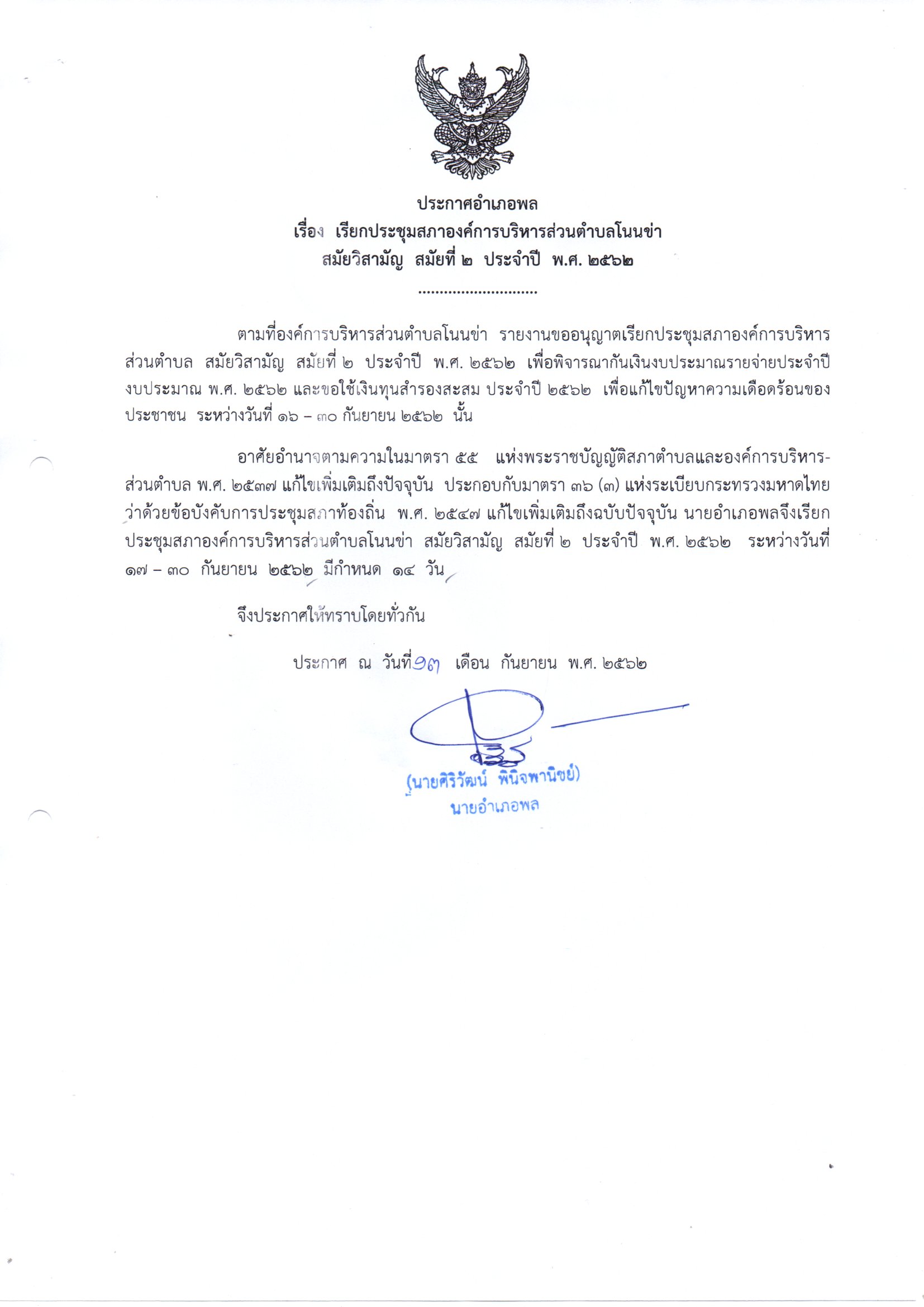 การเรียกประชุมสภาฯ สมัยวิสามัญ สมัยที่ 2 ประจำปี 2562